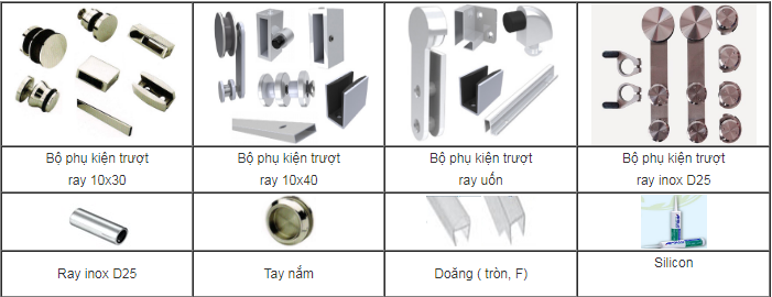 - Phụ kiện trược ray 10*30, 10*40 hoặc ray uốn.