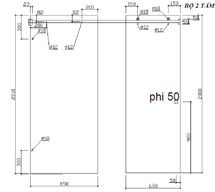 Bản vẽ cad cửa kính lùa treo