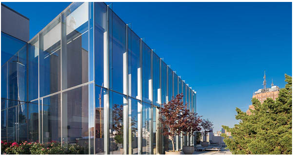 Chất liệu kính trong xuyên suốt công trình. Ngoài ra để giữ cho công trình bên vững qua thời gian một hệ thống thép đặc biệt đã được dùng làm dàn đỡ cho ngôi nhà.