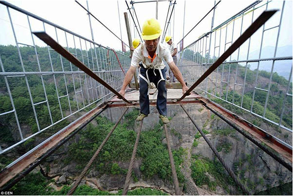 Một vài hình ảnh của cây cầu làm bằng vách kính cường lực trong suốt bắt qua vực sâu.